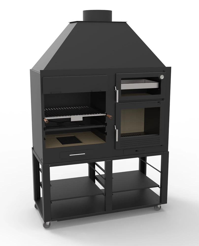 Barbacoa y horno de leña, todo en uno, de una robustez impresionante. Ideal para colocar en su jardín o terraza, techado o al aire libre.