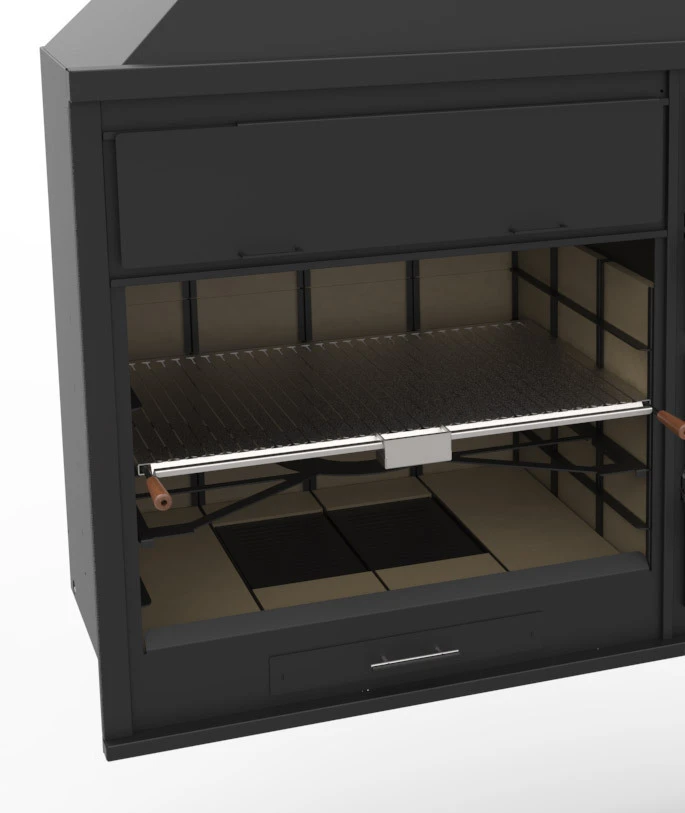 – Parrilla de cocción de Acero Inoxidable tipo Argentina (con varillas en forma de V) y recoge-grasas.