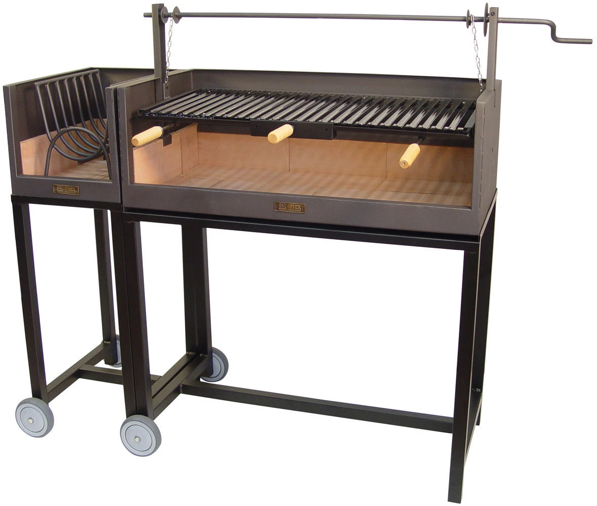Las barbacoas de Imex El Zorro han sido completamente rediseñadas. Los cambios más relevantes a destacar son: Elegantes ruedas 4×4 para todo tipo de superficie, elevador reversible, manivela extraíble, cuba fabricada en ladrillo refractario de alta resistencia lo que nos permite poder usar leña sin problema.