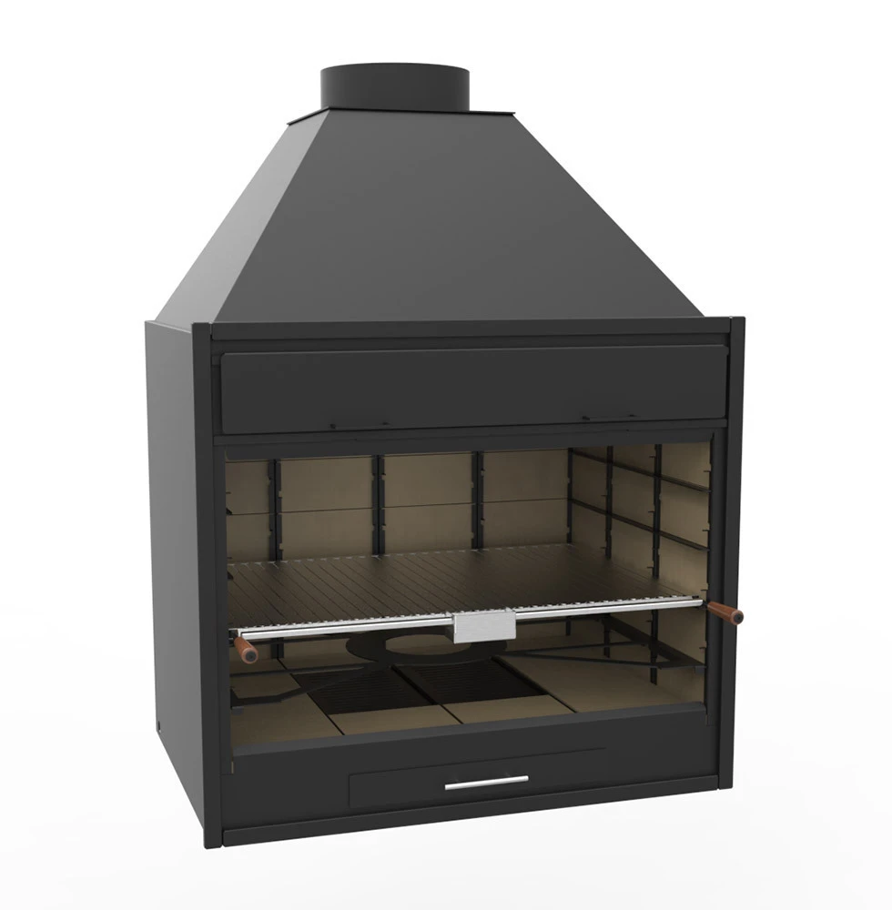 Fabricada con Acero al carbono de 4 mm. y con el interior de ladrillo refractario para poder cocinar y asar con carbón o leña, dándole así un toque de sabor exquisito a su comida.