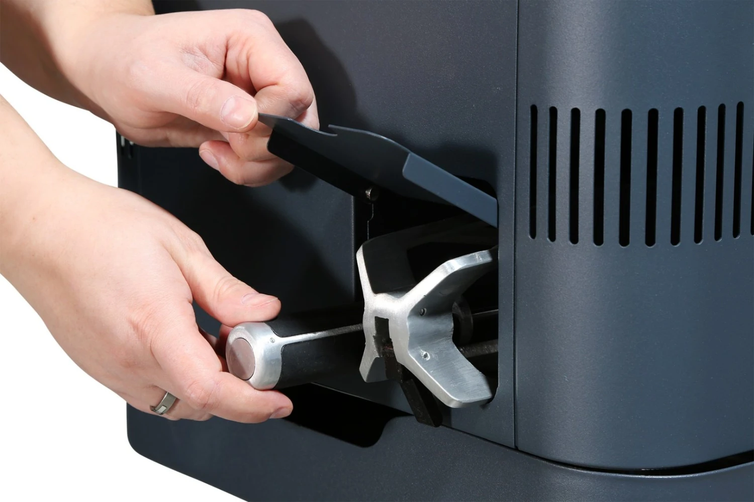 En la base de la cuba del carbón se oculta una resistencia eléctrica de 1800 W con la que prepararemos el carbón en tan solo 10 minutos y simplemente pulsando un botón, gracias a su sistema de encendido Fast Flame.