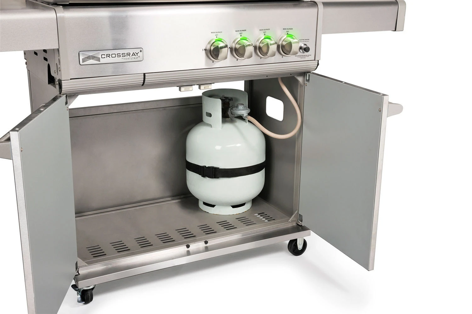 El sistema patentado Crossray utiliza quemadores infrarrojos instalados lateralmente y orientados hacia arriba, apuntando a la superficie de cocción. Gracias a este sistema, las prestaciones son superiores a las de cualquier barbacoa tradicional. El calor infrarrojo penetra en la comida, manteniéndose fresca y jugosa por dentro y sellándola por fuera.