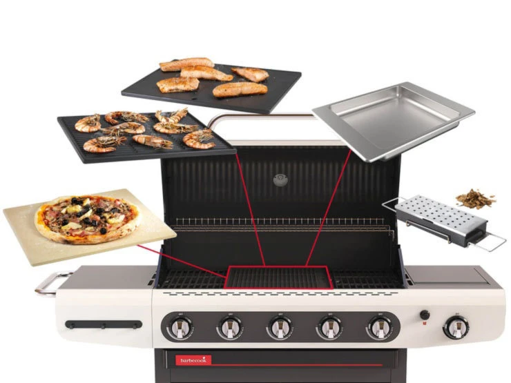 – Se adapta sobre las barbacoas de gas Barbecook modelos Siesta y Quisson, simplemente quitemos la parrilla central y coloquemos la piedra de pizza en su lugar.