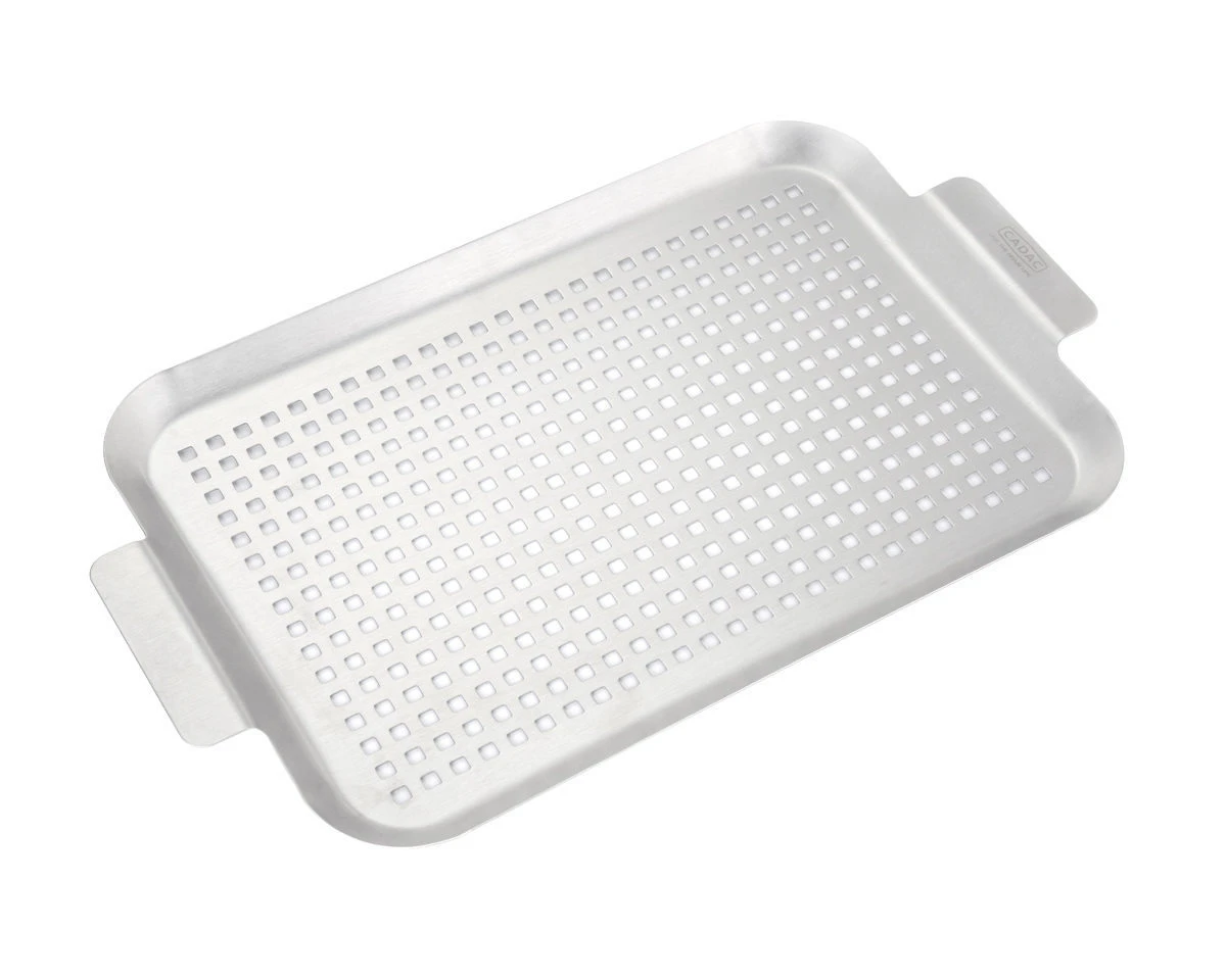 La bandeja con parrilla de acero inoxidable es ideal para asar platos delicados, como pescado y mariscos.