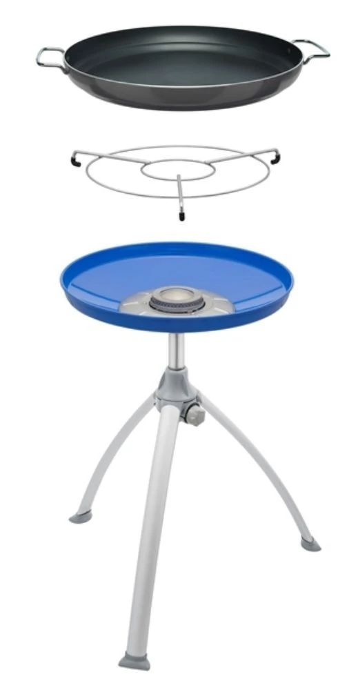 La BBQ Paella Braai es una nueva versión de la barbacoa Skottel Braai. En vez del célebre Skottel multiusos incorpora una gran paellera de ø 47 cm.
