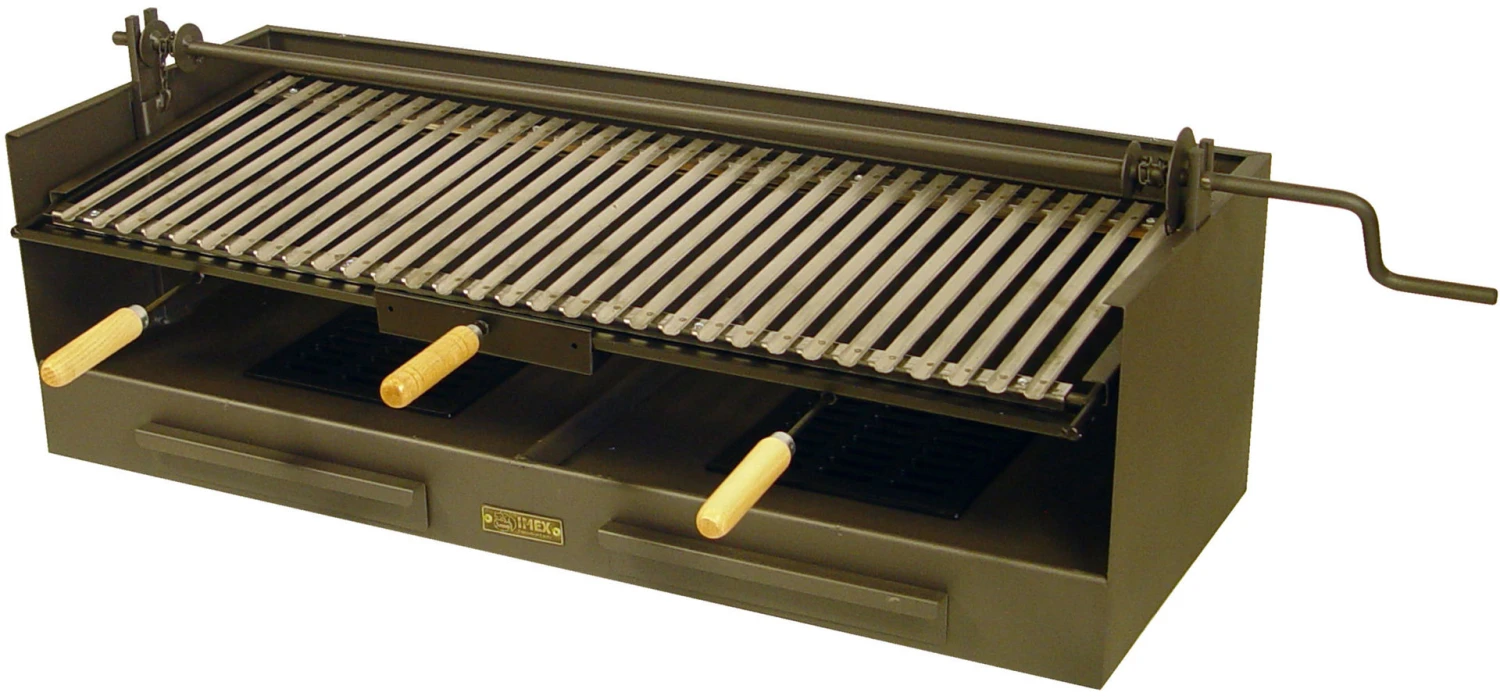Los cajones de barbacoa de Imex El Zorro han sido completamente rediseñados. Los cambios más relevantes a destacar son: Elevador reversible, manivela extraíble, cajón recoge cenizas reforzado, parrilla del hogar de hierro fundido, cuba fabricada en acero de alta resistencia lo que nos permite poder usar leña sin problema.