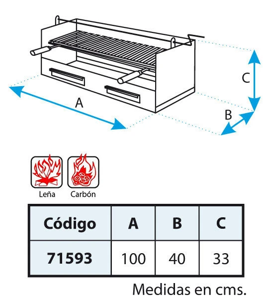 – Medida de la Parrilla: 98 x 41 cm.