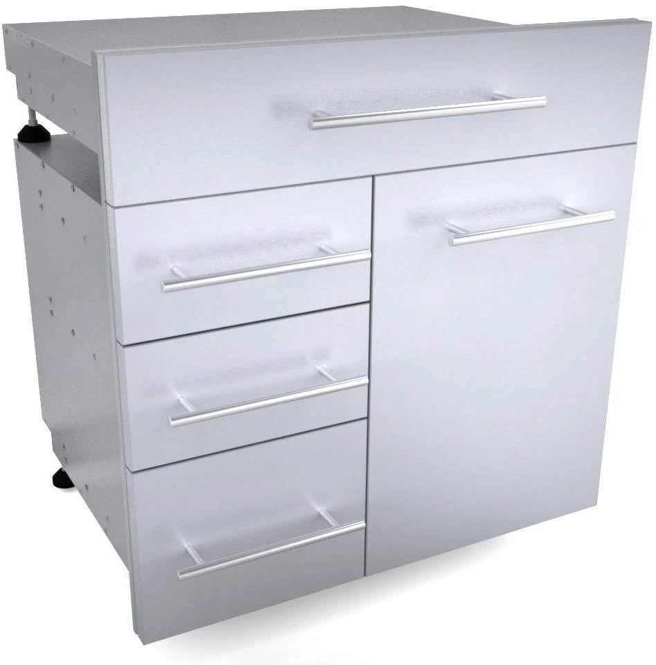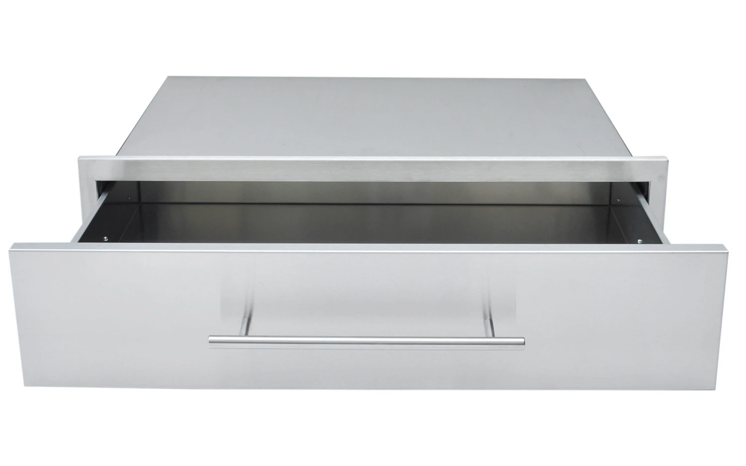 El cajón simple Designer Series está fabricada con el mismo acabado que las barbacoas Sunstone y con el tirador de acero pulido.
