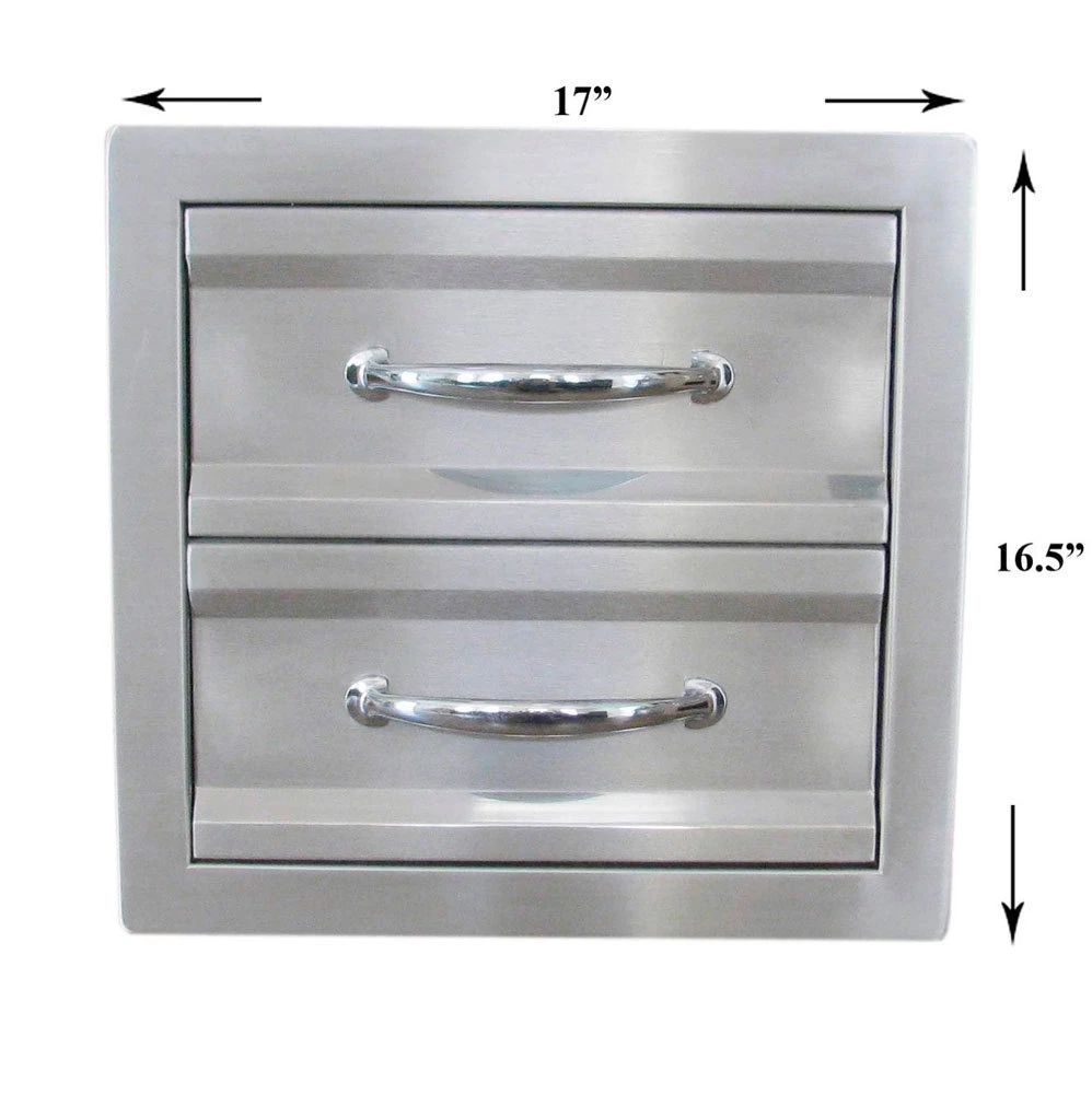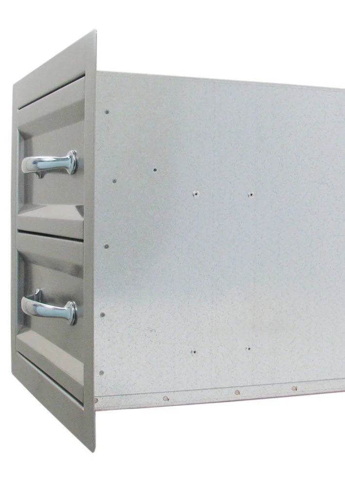El cajonero doble grande está fabricado con el mismo acabado que las barbacoas Sunstone y con el tirador de acero pulido. El cajonero una vez instalado queda completamente a ras, así que es perfecto para diferentes tipos de superficies como piedra, cemento, etc.