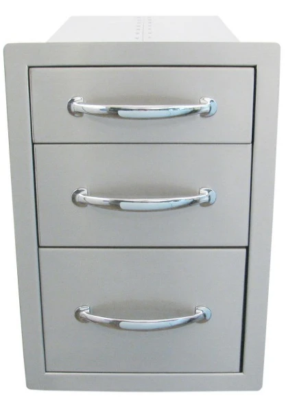 El cajonero triple está fabricado con el mismo acabado que las barbacoas Sunstone y con el tirador de acero pulido. El cajonero una vez instalado queda completamente a ras, así que es perfecto para diferentes tipos de superficies como piedra, cemento, etc.