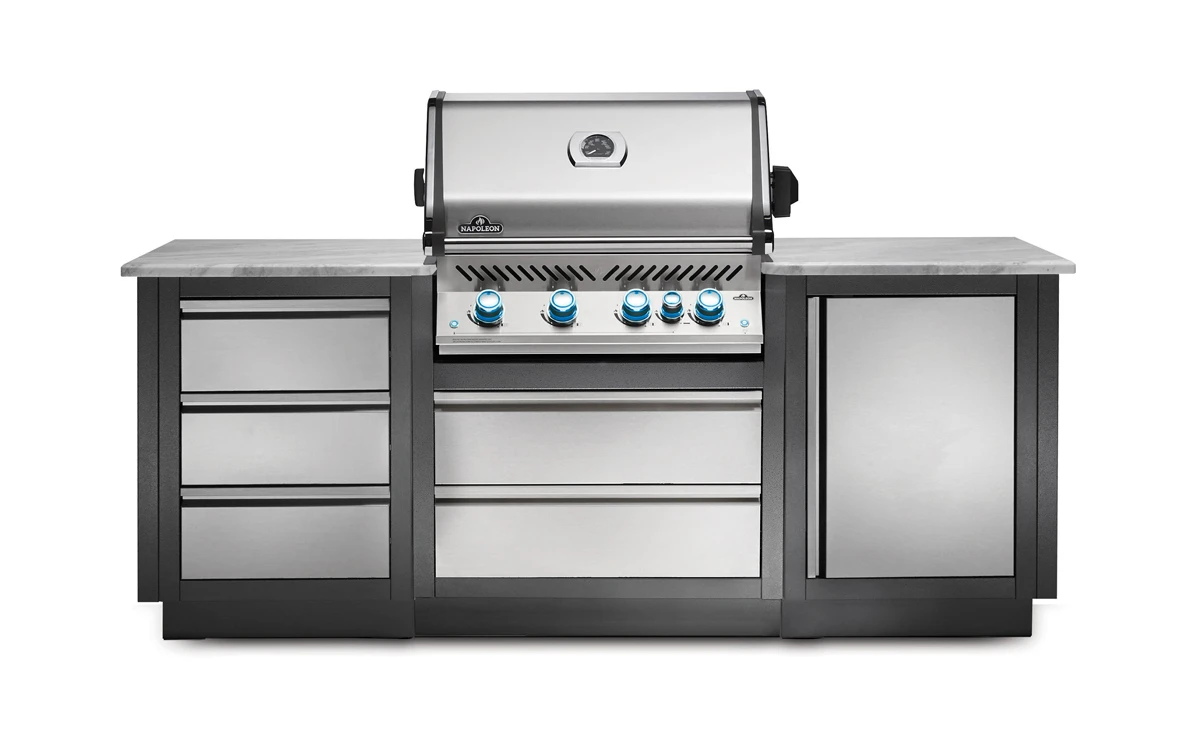 El panel final para el lateral de su isla Oasis de Napoleon termina limpiamente su cocina exterior.