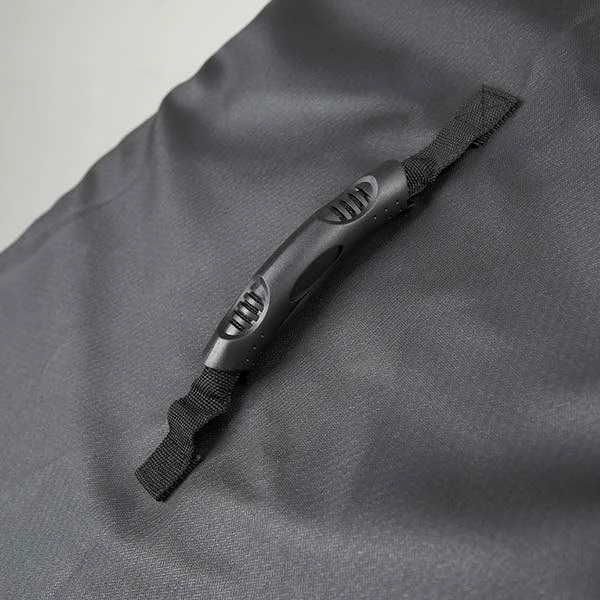 Los pliegues están bordados en azul, que ademas de darle estilo, refuerza la funda. Incorpora dos asas engomadas para un fácil agarre y una mayor comodidad a la hora de colocarla o retirarla de la barbacoa.