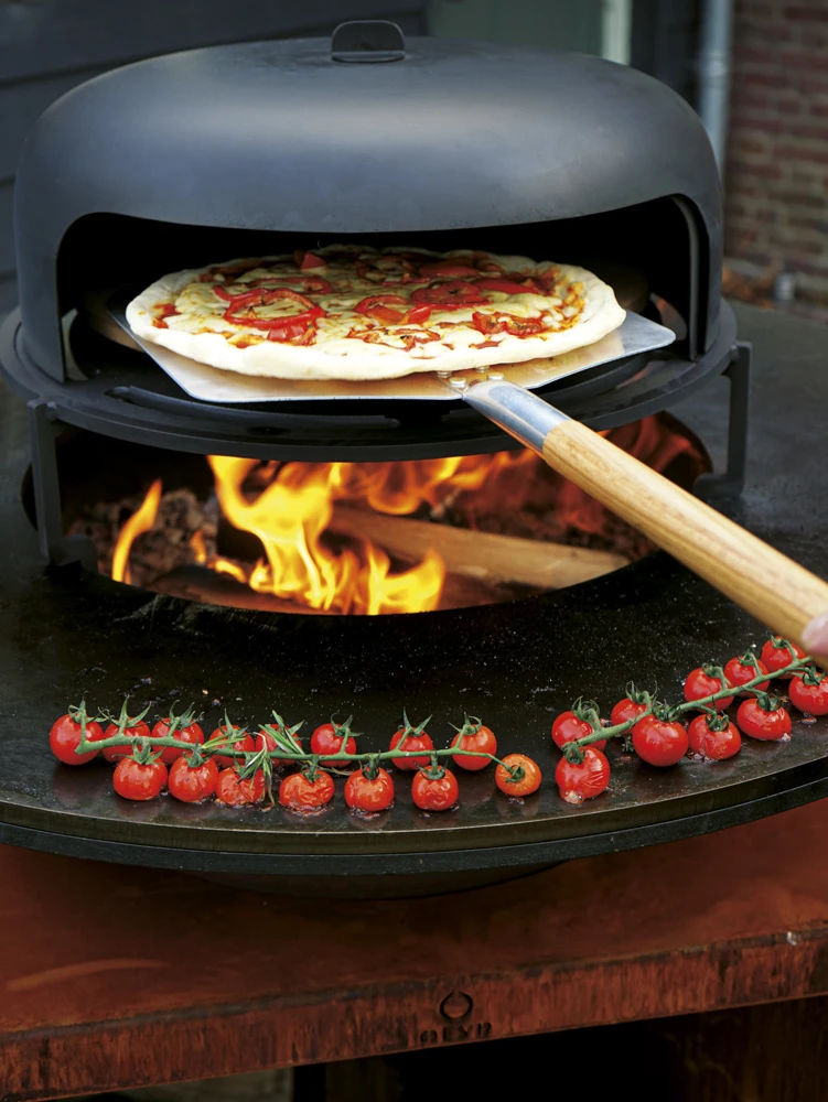Si hay un accesorio de cocina de exterior que es súper popular en estos días, es el horno de pizza. Con su fuego de leña natural, la unidad de cocción de OFYR se presta como ninguna otra a hacer deliciosas pizzas.