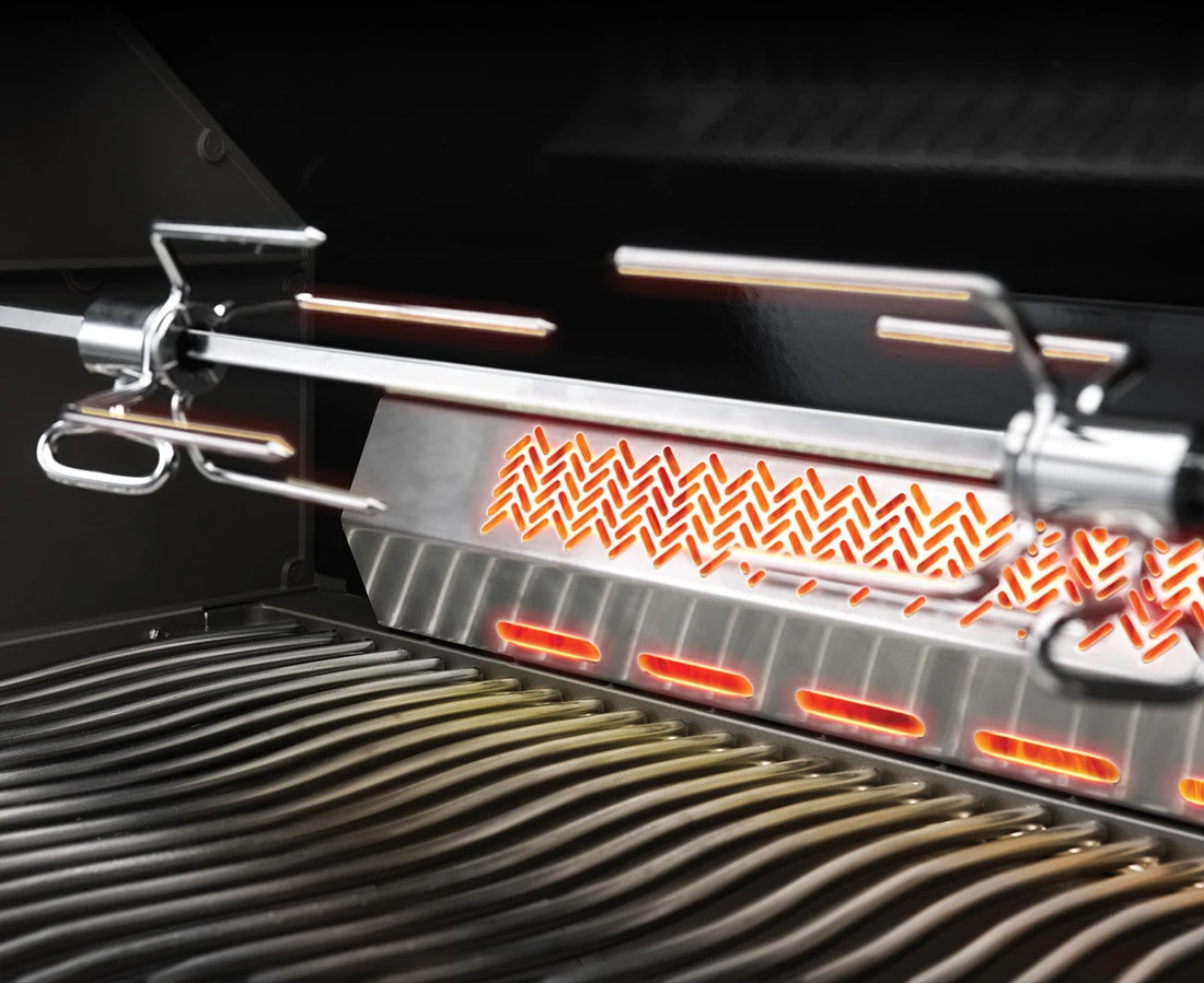 La barbacoa de gas encastrable Prestige Pro 665 de Napoleon cuenta con un quemador trasero de infrarrojos de Acero Inoxidable fabricado con características de alta calidad, proporcionando un alto rendimiento que hace que asar sea fácil e impresionante.