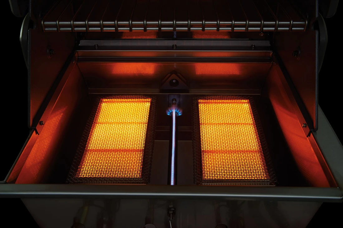 Ase como un profesional. El calor del quemador infrarrojo trasero es perfecto para marcar a fuego alto y asar a fuego lento.