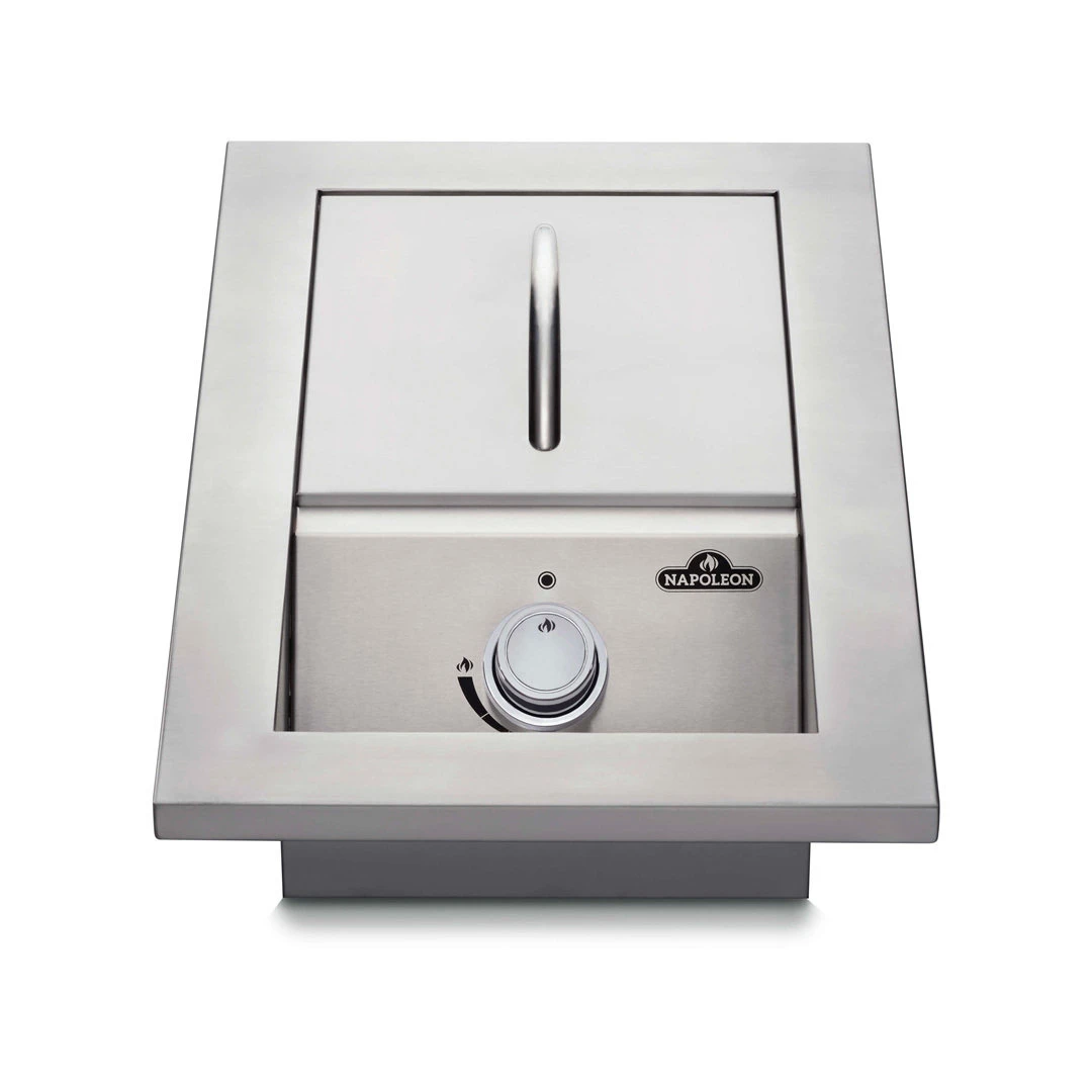 Hecho de acero inoxidable de grado marino, este quemador lateral integrado hace juego con su cocina al aire libre personalizada. Estos quemadores ofrecen durabilidad y estilo, y son fáciles de instalar. Esta excelente adición a su cocina al aire libre se puede proteger de forma sencilla con la cubierta protectora de acero inoxidable incluida.