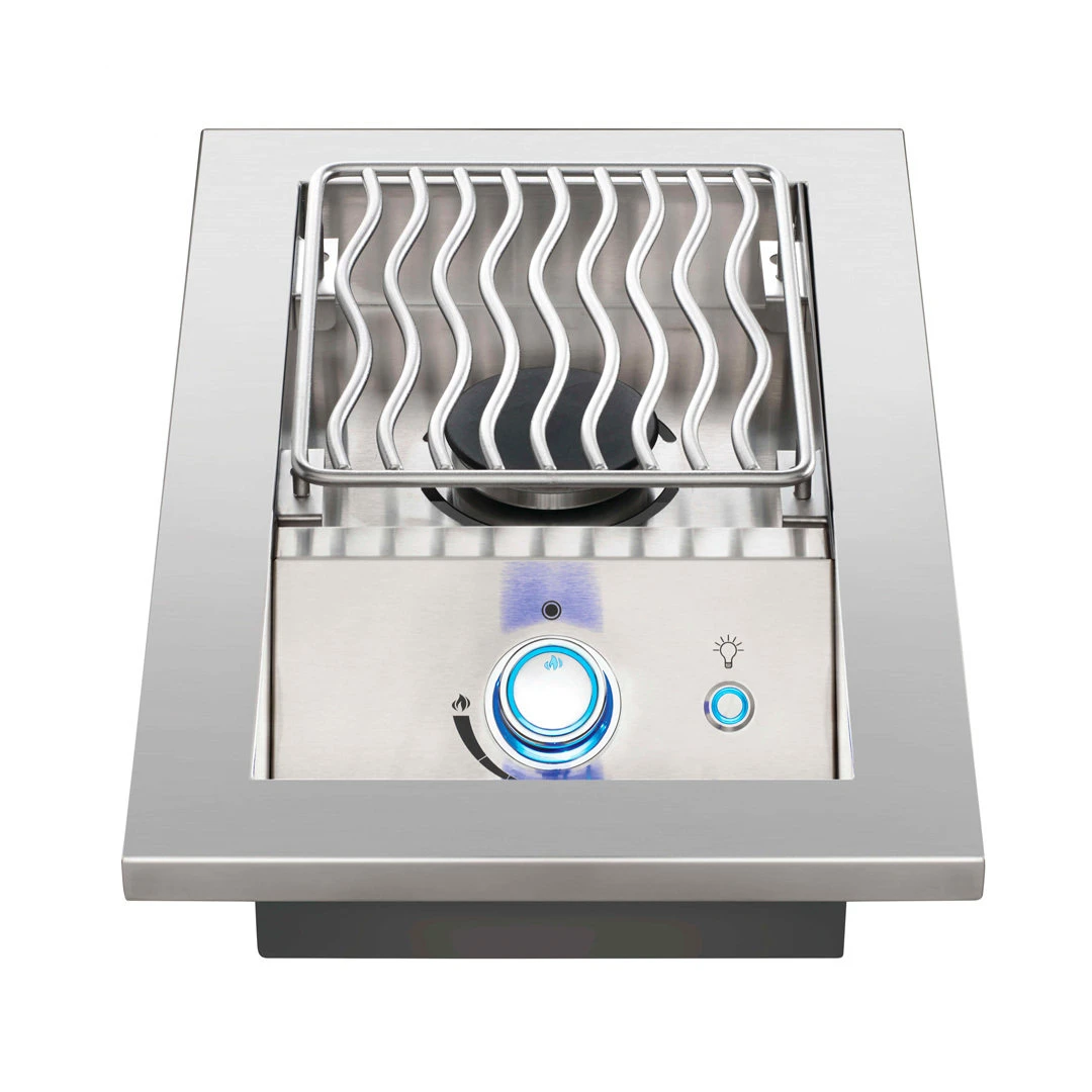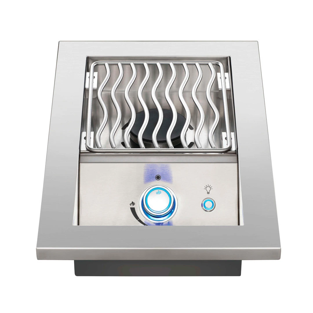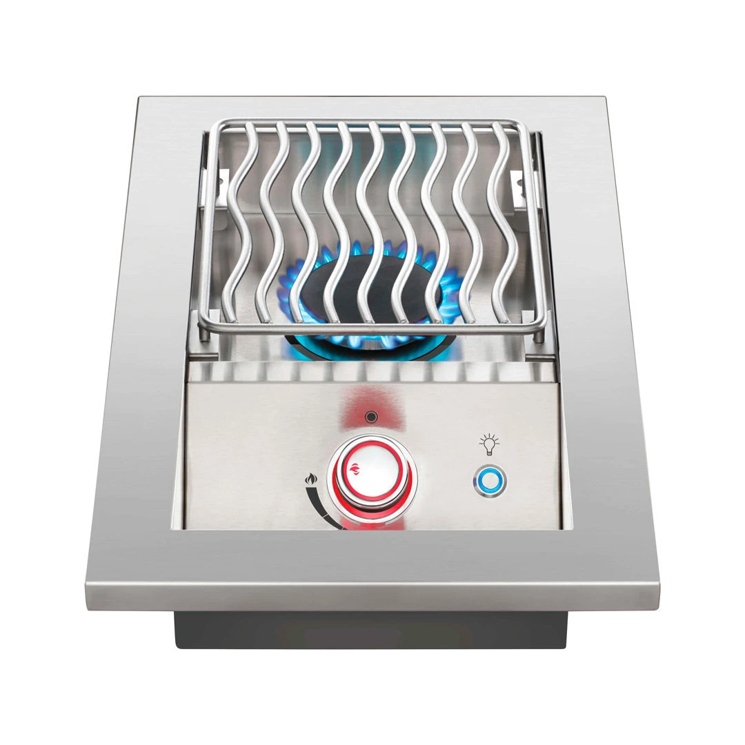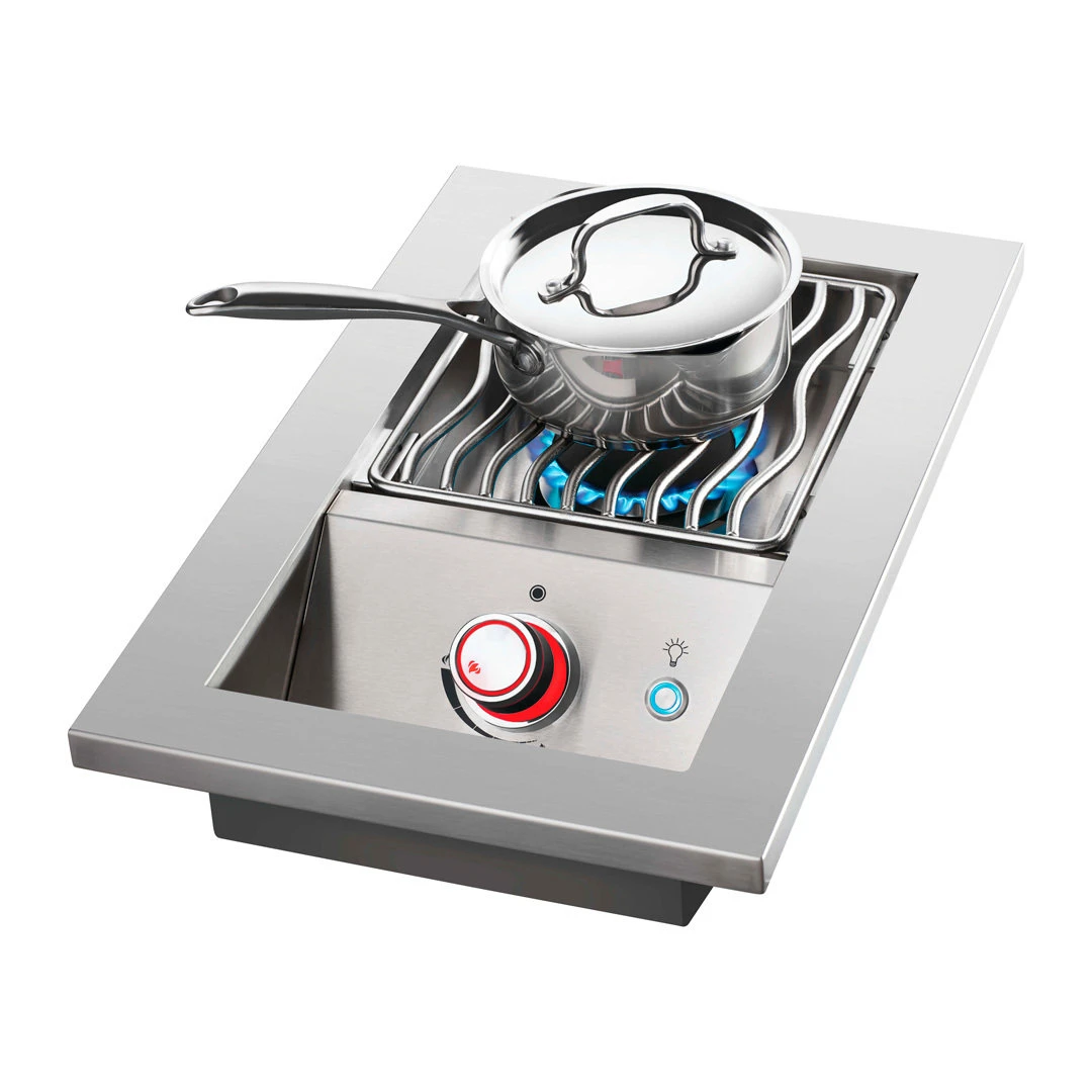 Elabore guarniciones y salsas mientras la parrilla principal está en uso con este quemador de estufa integrado de 25,4 cm. Encienda estos quemadores de manera instantánea y con una mano, con el sistema de encendido Jetfire. Las grandes y ergonómicas perillas de control aportan ambiente y seguridad; tienen un glorioso color azul que cambia a rojo cuando se usan los quemadores.