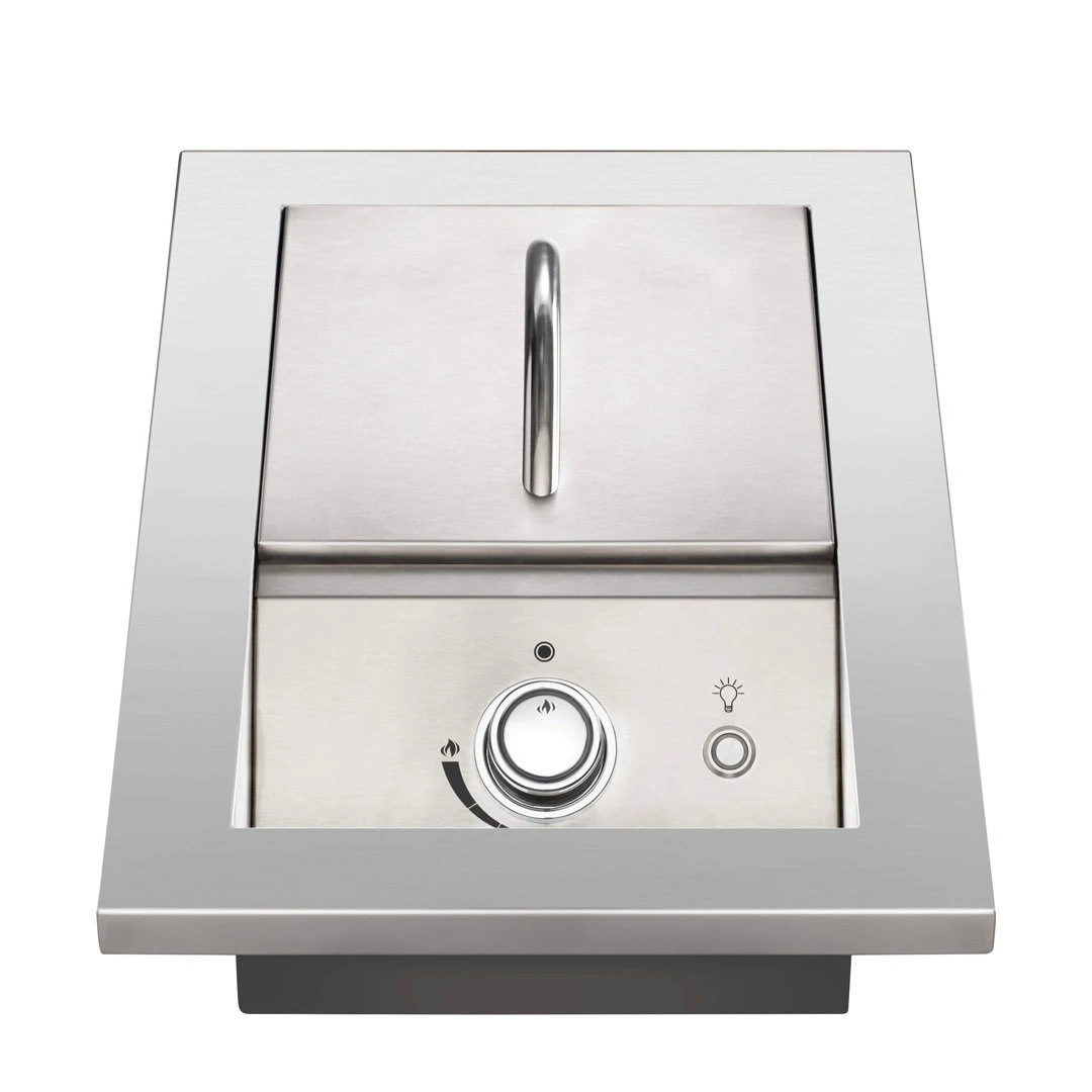 Hecho con la misma calidad de acero inoxidable marino que las parrillas integradas Serie 700, este quemador lateral hace juego con su cocina personalizada al aire libre. Estos quemadores aportan gran vida útil y estilo, y fueron fabricados para instalarlos con facilidad. El kit de suministro eléctrico N370-1091-SER es necesario para todos los quemadores de la serie 700 que se utilicen en una instalación sin una barbacoa de encastrar de la serie 700 para poder suministrar energía a las perillas de control.