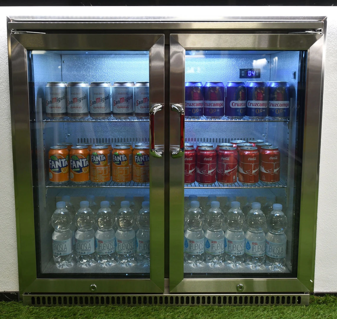 Nevera de gran calidad y elegante diseño fabricada en Acero Inoxidable grado 304 de 190 lt. para su uso sin problema en el exterior ya que cuenta con un grado de protección IP que los hace resistentes a la lluvia. Puede refrigerar desde los 0 ºC hasta los 10 ℃ y la temperatura se puede ajustar para agua, vino, cerveza, refrescos, etc.