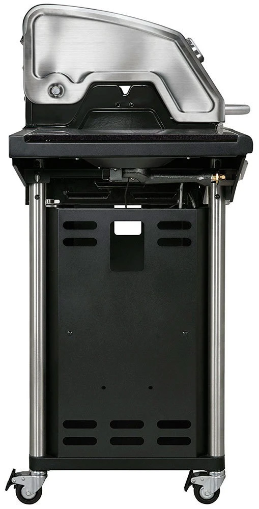 Equipadas con un carro robusto y fácil de maniobrar, con una gran área de cocción y preparación. Los indestructibles quemadores de hierro fundido retienen el calor y la distribuyen uniformemente por toda la superficie de cocinado. El termómetro integrado le permite controlar con facilidad la temperatura, mientras que los protectores de llamas, desarrollados especialmente para este sistema de barbacoa, reducen las llamaradas.