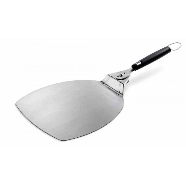 Esta pala es lo suficientemente grande para manejar una pizza de tamaño familiar y es ideal para usar con las piedras de pizza redondas y cuadradas de Weber.