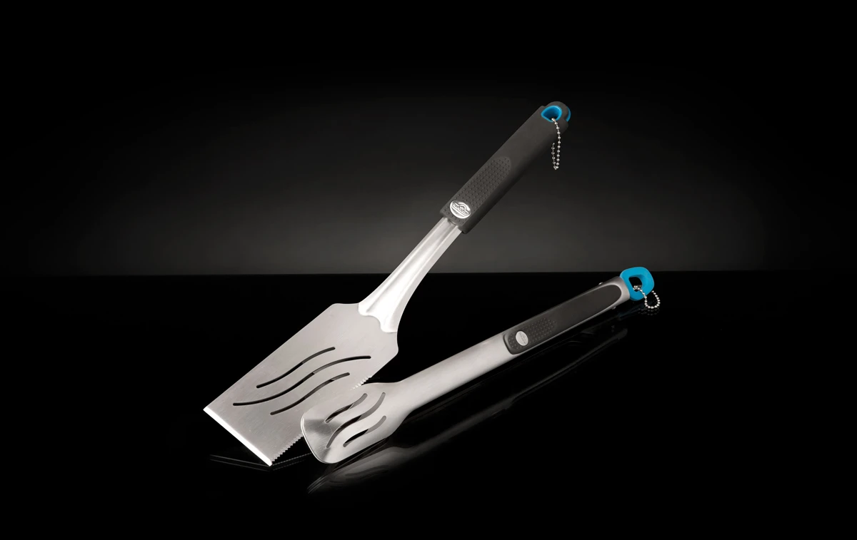 Todo maestro de la barbacoa necesita una espátula y unas pinzas para preparar una buena comida en la barbacoa. Este juego de 2 utensilios Napoleon está fabricado en Acero Inoxidable duradero y cuenta con un mango ergonómico de tacto suave en ambas empuñaduras.