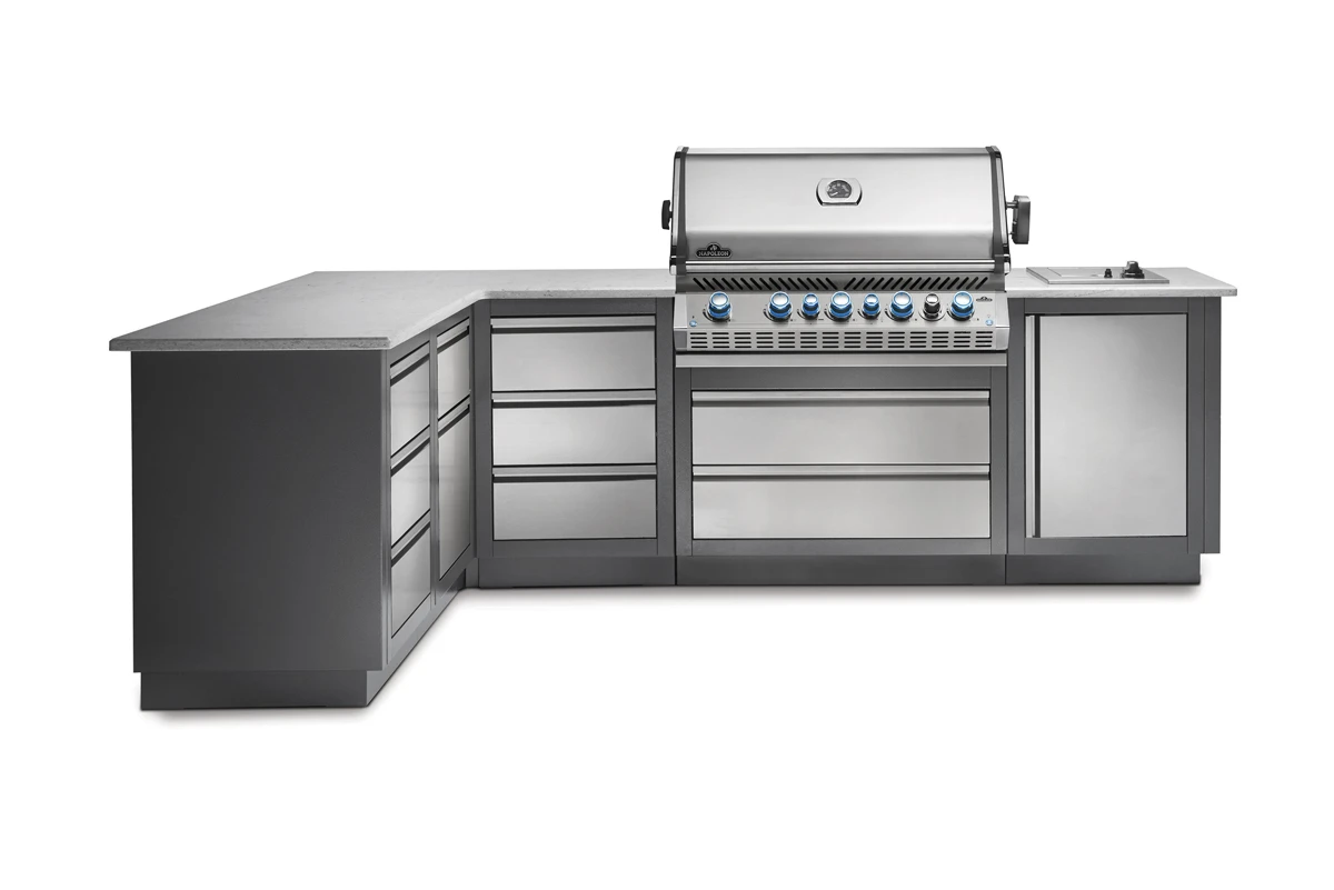 Esta pieza es perfecta para configurar como quiera su cocina exterior de Napoleon gracias a la flexibilidad que proporciona. Usando dos piezas de Unión de 45º para Módulos Oasis Napoleon podrá crear un giro de 90º si lo desea.