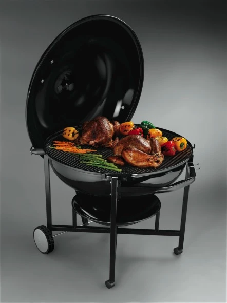 La enorme capacidad de la barbacoa de carbón Ranch Kettle define la atmósfera de cualquier fiesta y la prolonga hasta el día siguiente. Con su parrilla de cocción de ø 94 cm. de diámetro que incorpora bisagras de Acero Inoxidable a los costados para agregar carbón fácilmente, no te faltará de nada cuando quieras cocinar para las masas.