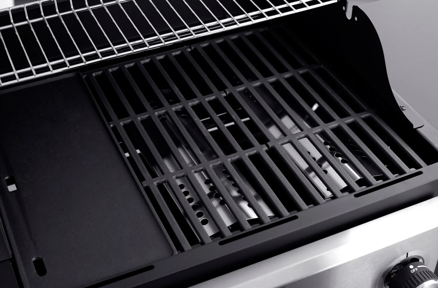 – Rejilla de calentamiento de acero cromado de 48,5 x 15 cm.